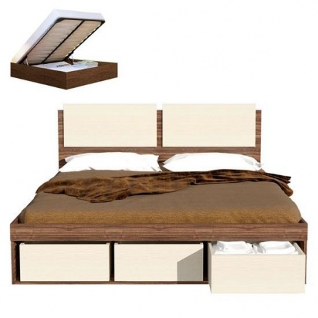 Двуспальная кровать Арт-Сити СВ-66 с основанием, оснащённым подъёмным механизмом и тремя вместительными ящиками , в них можно хранить подушки и постельное бельё