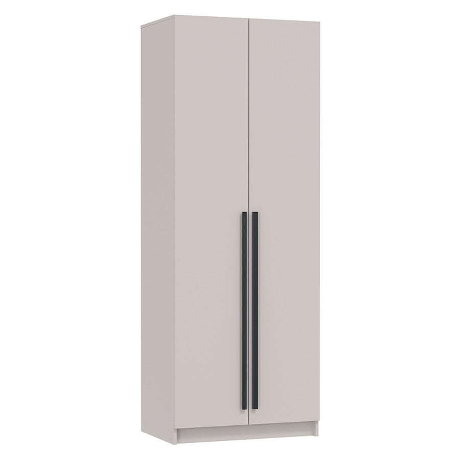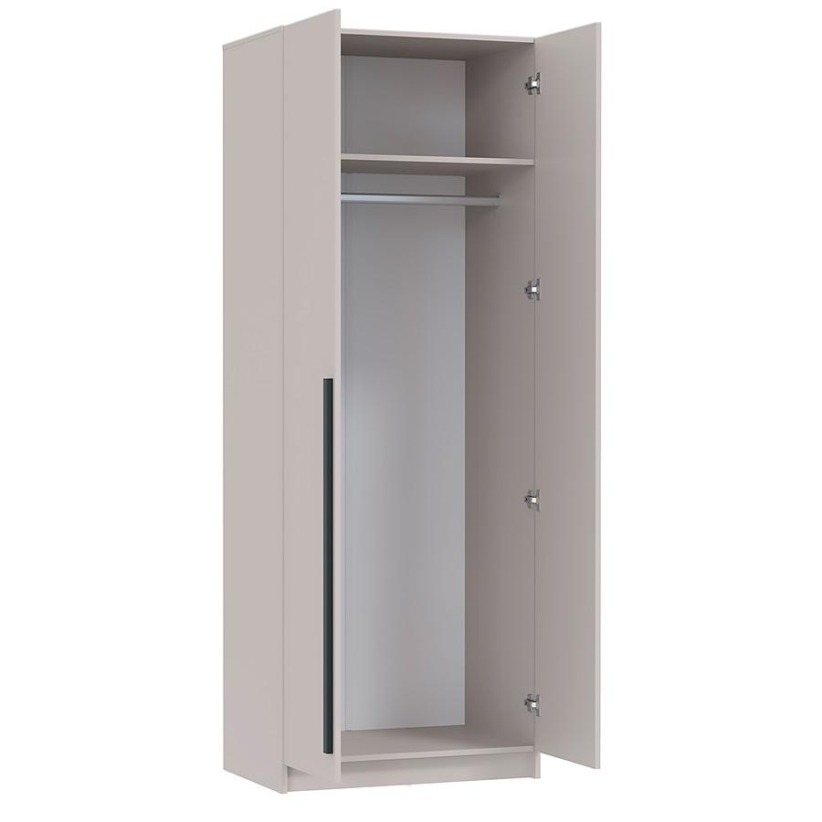 Шкаф 2-х дверный 67.17 Брандо высотой 215 см цвета кашемир с плоским фасадом из ЛДСП, чёрные ручки (профиль МДФ/ПВХ). Двери с доводчиками. Внутри шкафа – верхняя полка, металлическая штанга для плечиков (расположена под полкой). Двери с доводчиками.