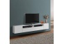 Подвесная тумба Прага с белым корпусом (ЛДСП) и фасадом белый глянец (МДФ), в её центральной части расположена широкая секция, разделённая на четыре части: сверху открытая ниша, ниже – откидная дверь. По бокам тумбы – распашные двери