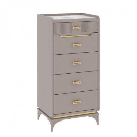 Комод Сиде цвета Мокко (верхняя панель – серый мрамор) с четырьмя ящиками, оснащёнными шариковыми механизмами выдвижения с доводчиками. Дно ящиков – прочный ХДФ толщиной 4 мм, крепится в пазы в боковых панелях, спереди и сзади – на саморезах. Не рекомендуется нагружать ящики более 10 кг.