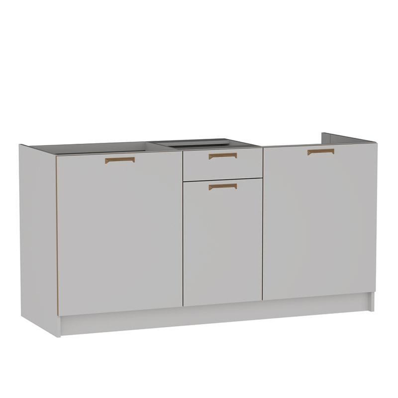 Стол Смарт С-160 при сборке можно собрать на любую сторону (стол под мойку справа или слева), он состоит из двух секций по 60 см и секция с ящиком – 40 см, петли на дверях с доводчиками. В секции под мойку нет полки. Секция с выдвижным ящиком на шариковых направляющих, за распашной дверью имеется полка.